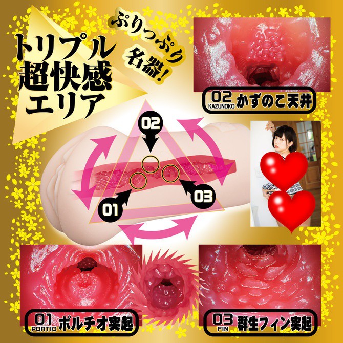 傳聞中希望的私處是由滿佈皺褶的陰道口到中段的顆粒群【飛魚子天井】和凹凸【子宮口突起】和密集的【魚鰭突起】交織出【三重快感地帶】,充分享受快感過後就由極狹【螺旋顆粒皺褶】地帶為你一口氣搾乾精子吧!